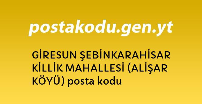 GİRESUN ŞEBİNKARAHİSAR KİLLİK MAHALLESİ (ALİŞAR KÖYÜ) posta kodu